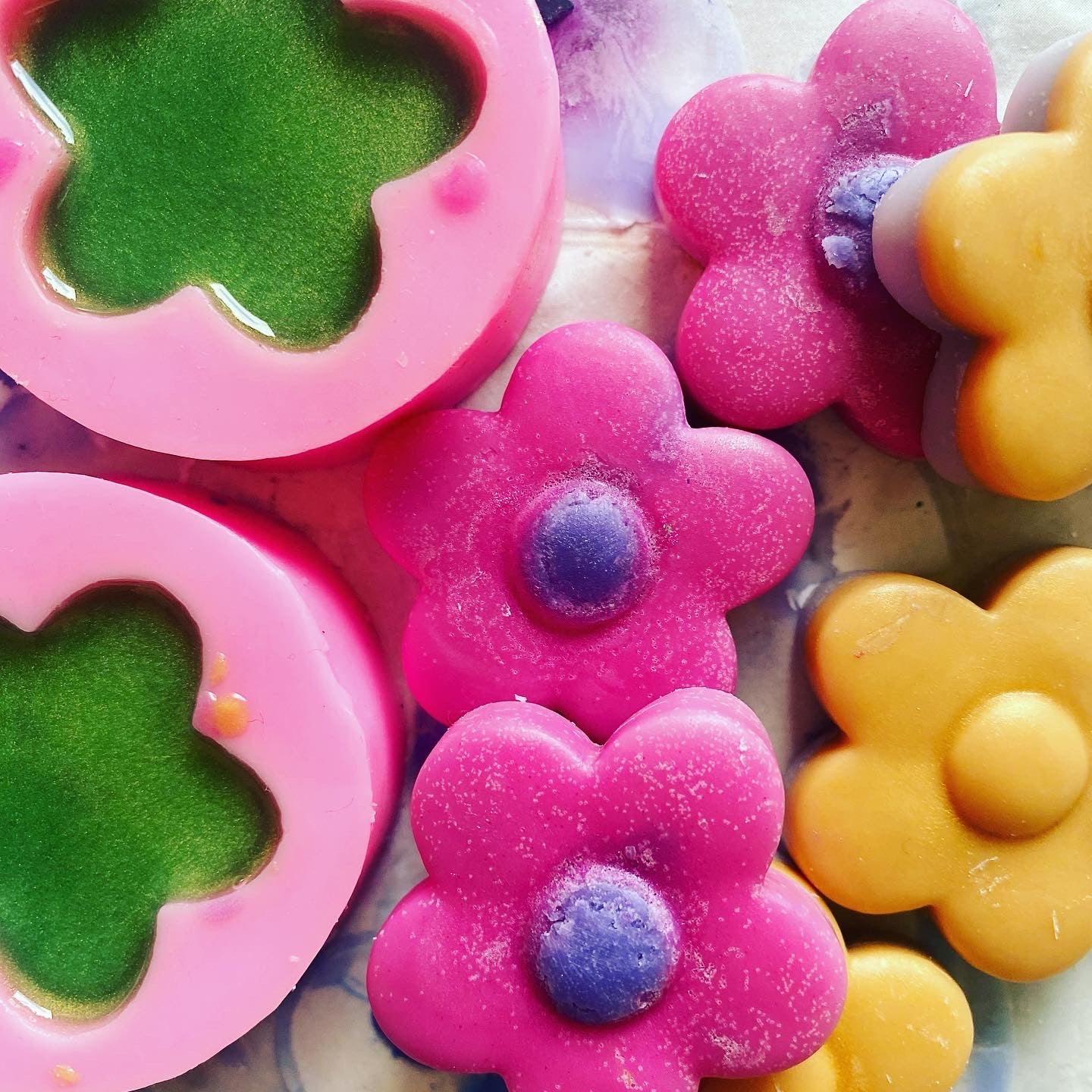Inside each pouch you will get three wax melts in the shape of a flower and in different colours.